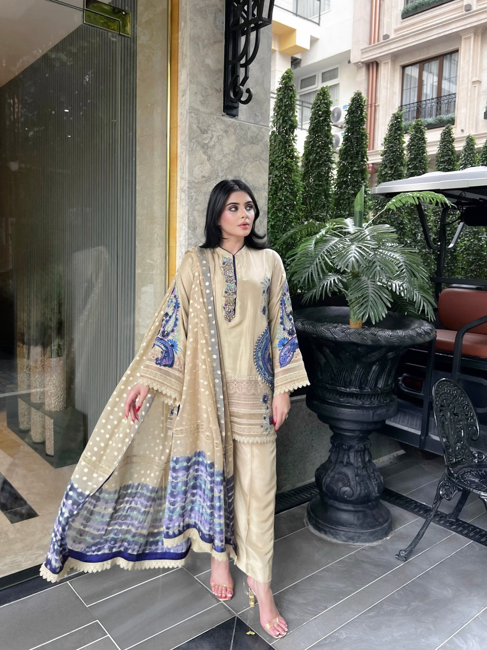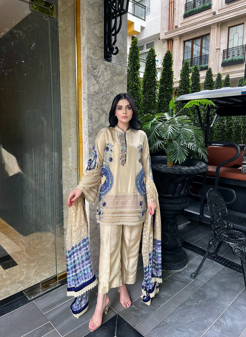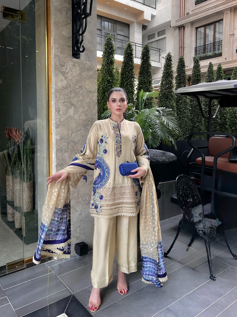 3-piece co-ord– straight shirt, trousers, and dupatta