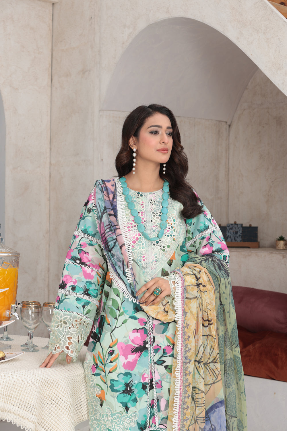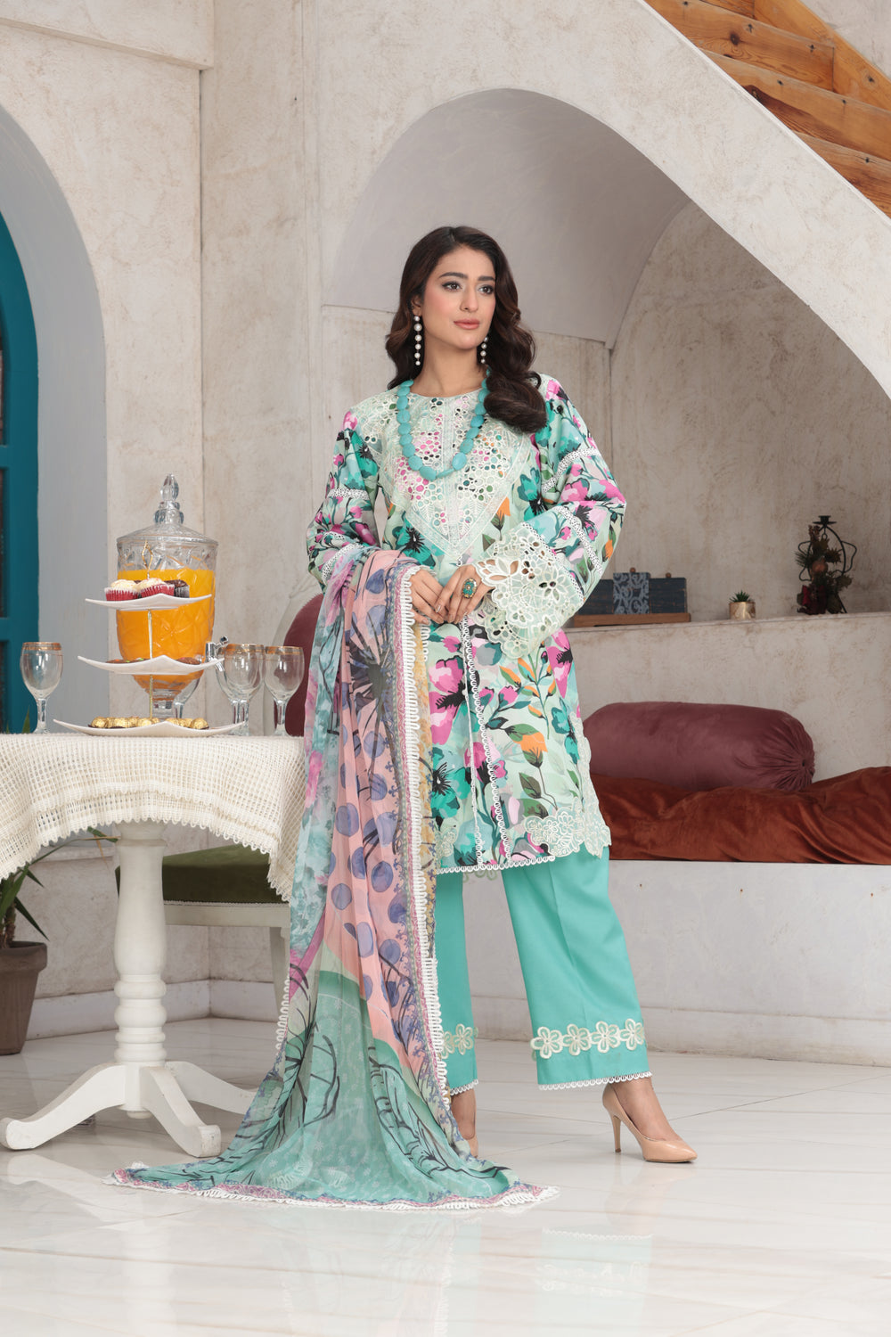 dupatta, and dyed lawn trousers. Available in stitched and unstitched options.