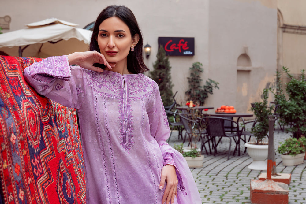 Embroidered Shirt Front of HandKhaddi Pure Cotton Bindi with Embroidery Boarder.Plain Shirt Back of HandKhaddi Pure Cotton Bindi with Embroidery Boarder.Embroidered Shirt Sleeves of HandKhaddi Pure Cotton Bindi.Embroidered Dupatta of HandKhaddi Luxury Organza