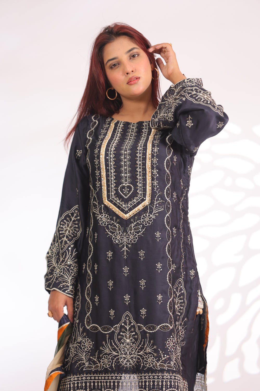 • Two Style Options – pair it effortlessly with a crushed silk sharara for a festive, royal vibe or silk trousers for a sleek, comfortable fit.