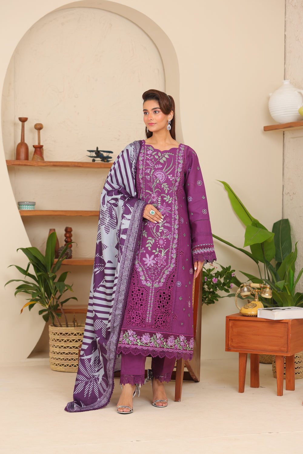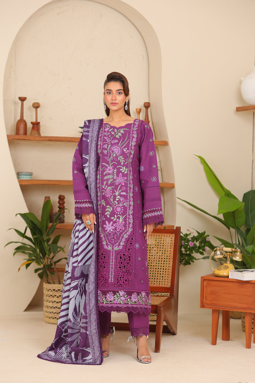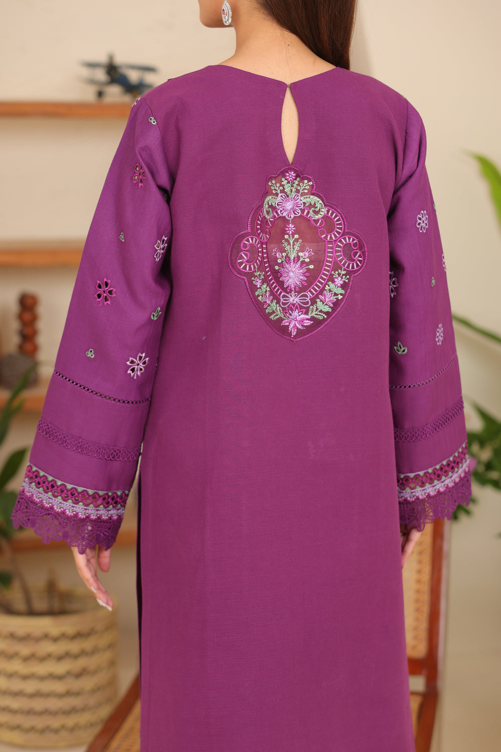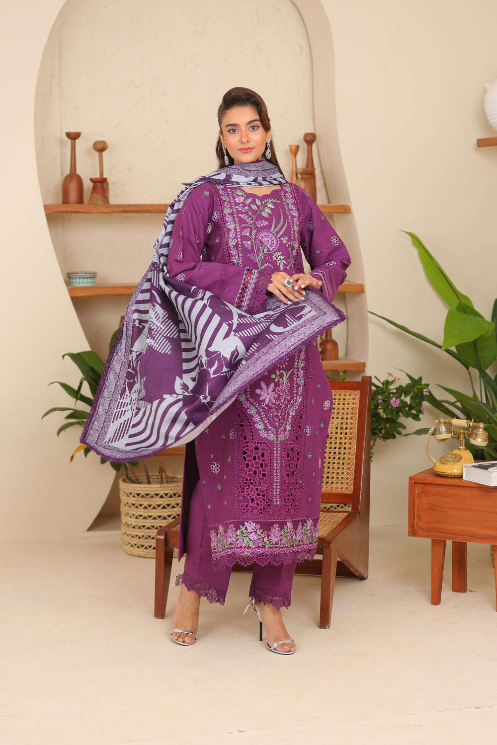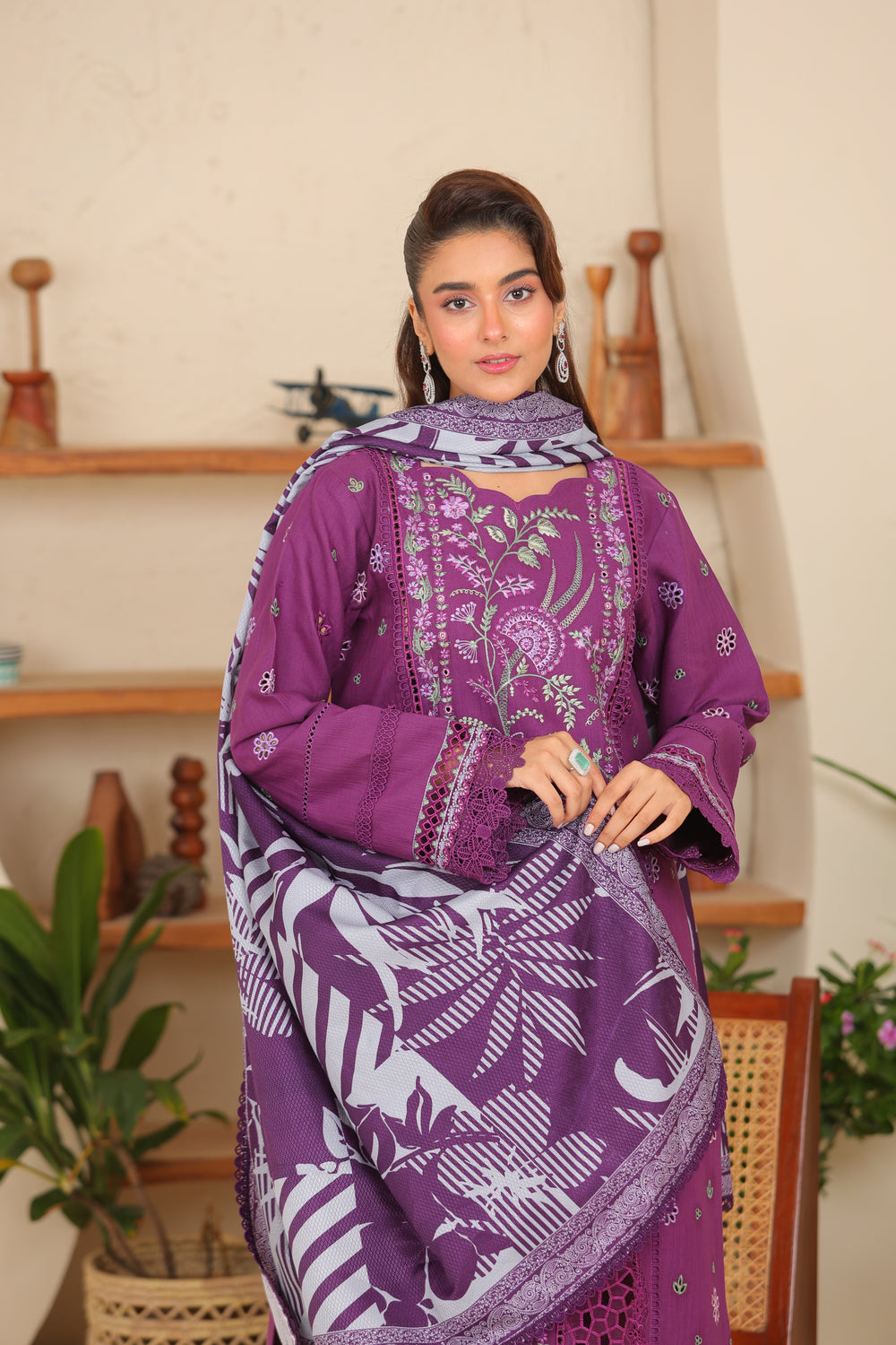 Experience Prune, a symphony of deep plum tones, intricate embroidery, and elegant cutwork — designed in luxurious khaddar with a soft dobby net shawl.