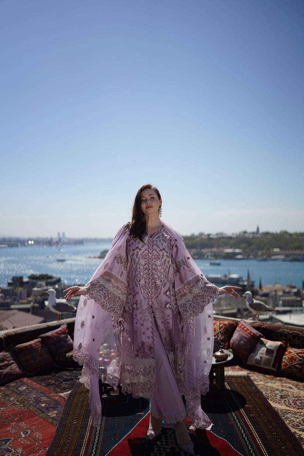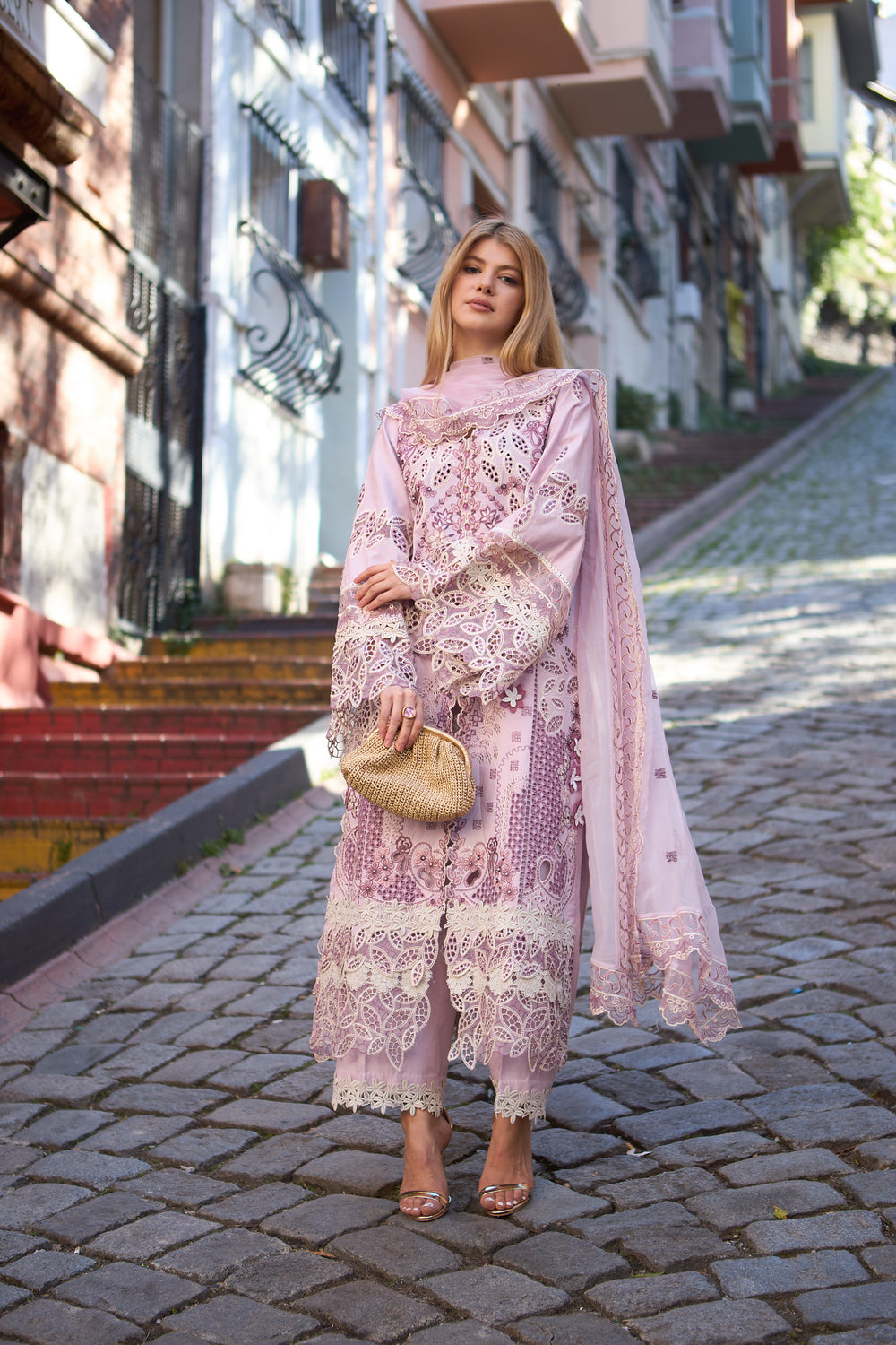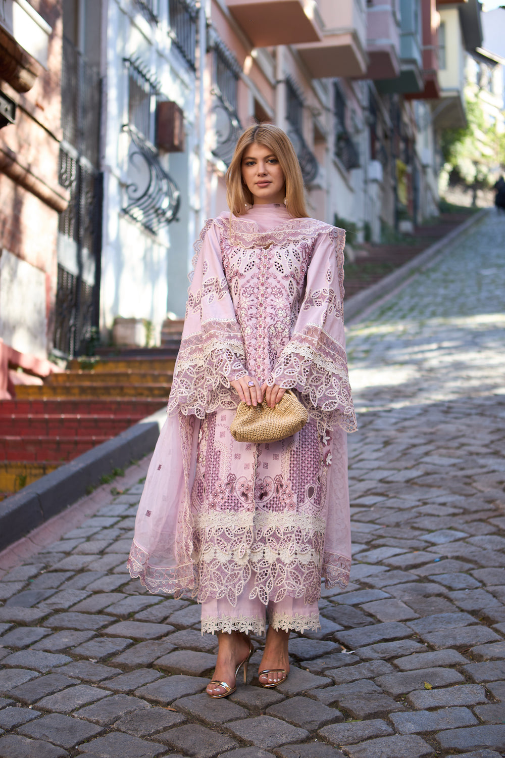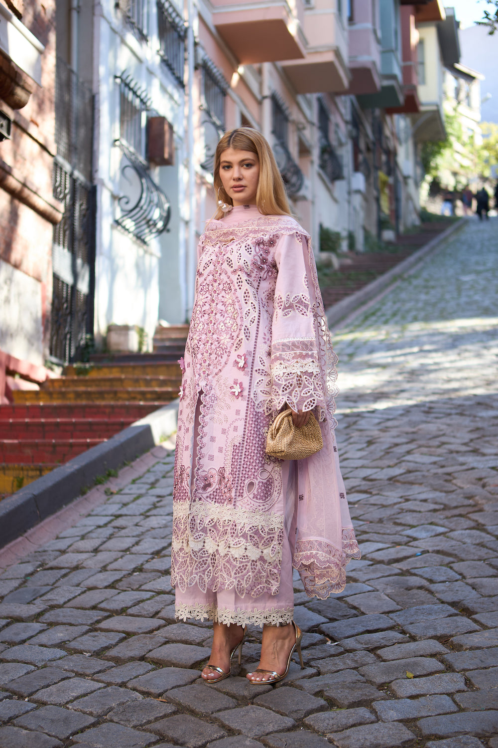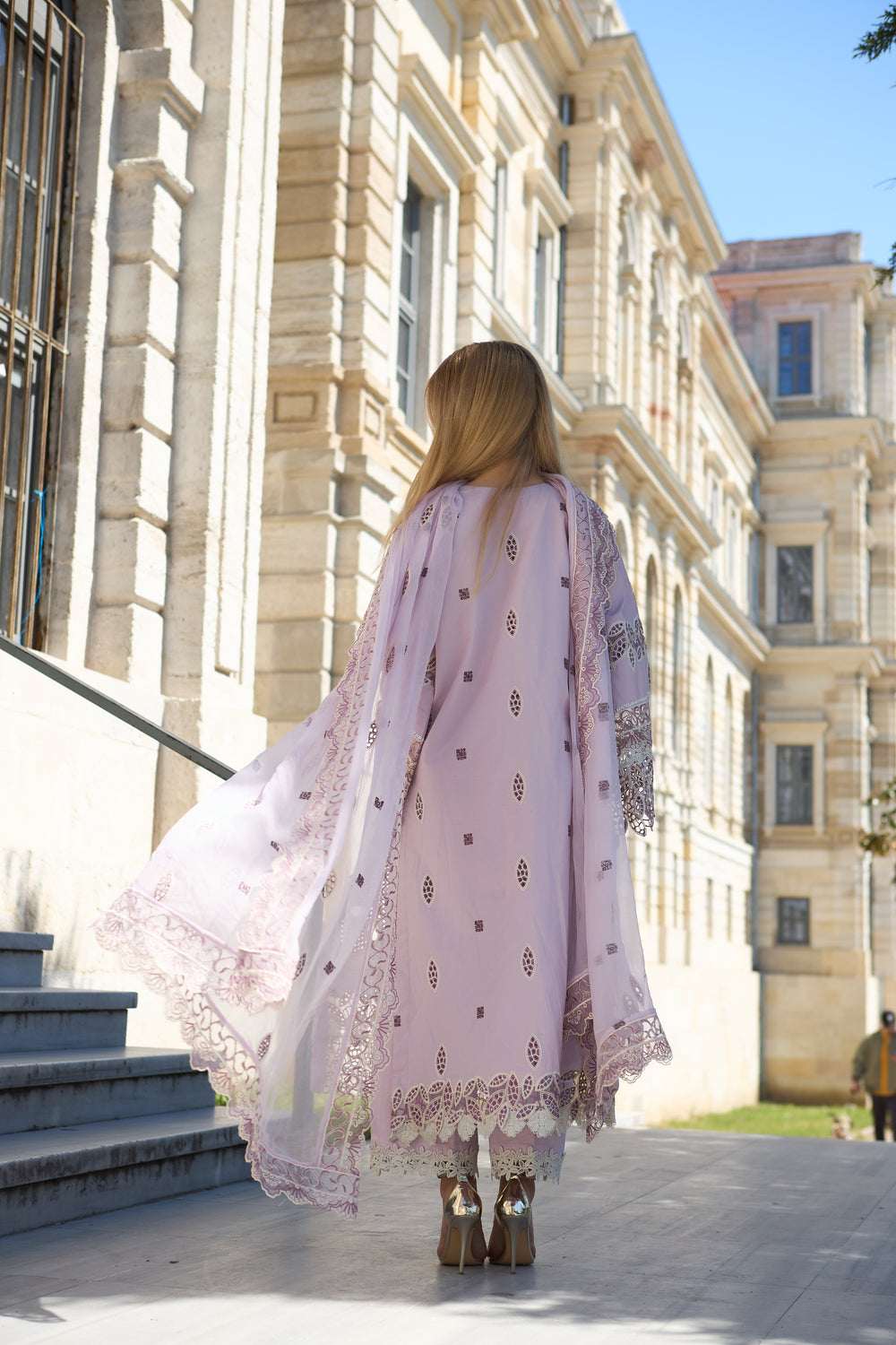 Geometrical & floral boring patterns with heavy elegant embroidery