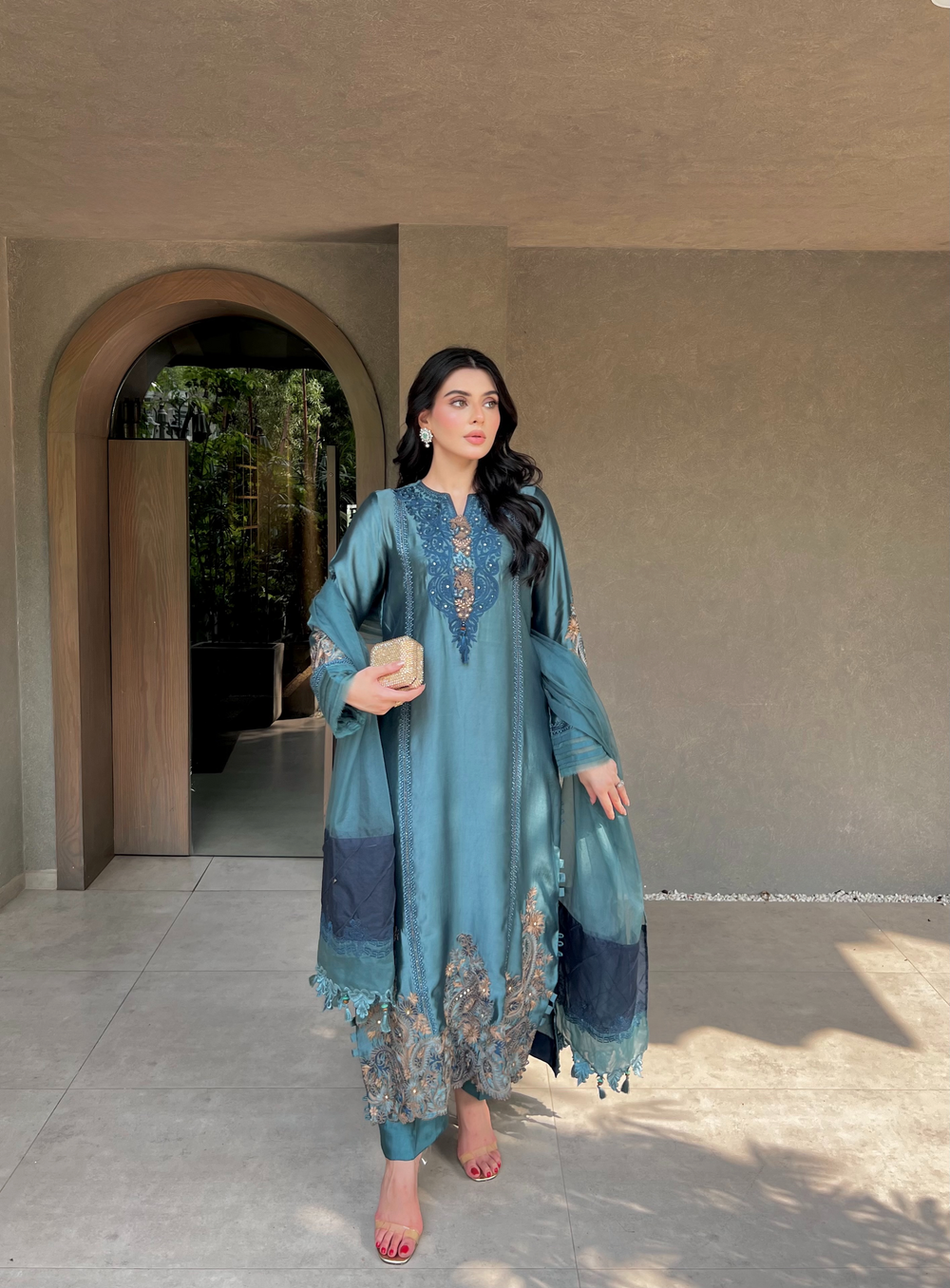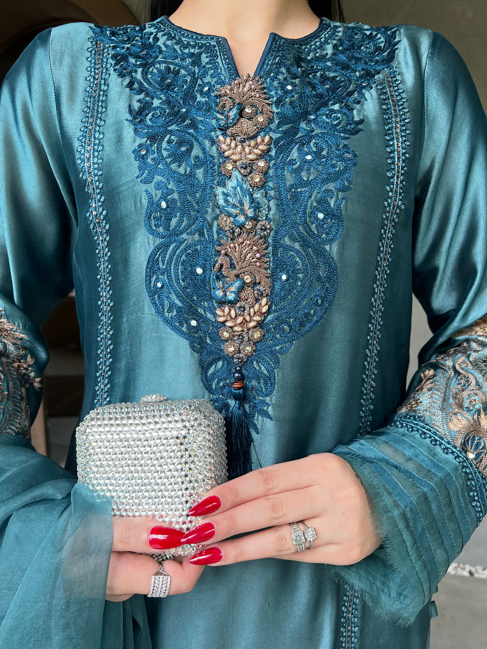 ● Deep teal sheesha tissue with a soft, regal shimmer
